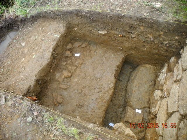 excavation in front of the cascade and unearthed the foundation course